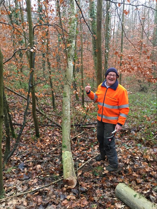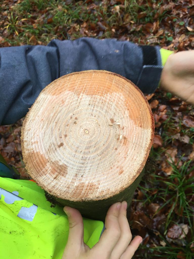 Ulrich Schott und seine Frau Edith Schott erwarteten bereits die neugiere Truppe und nahm diese auch gleich mit in das Reich der Eschen! Im Eschenwald zeigte Ulrich Schott, was man alles zum Fällen einen Baumes benötigt, welche Sicherheitsvorkehrungen beim Fällen zu treffen sind, wie man das Alter eines Baumes herausfinden kann, sich die Rinde anfühlt…