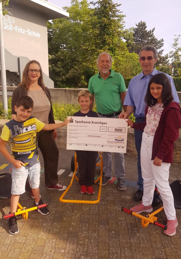 Dank der großzügigen Spende von 500 Euro durch den Kiwanis Club Bruchsal konnten zur großen Freude der Joß-Fritz- Grundschulkinder mehrere Fahrzeuge für die Ganztagsschule angeschafft werden. Im Gespräch mit den Verantwortlichen Herrn Weiss und Herrn Dr. Frangenheim stellte die kommissarische Schulleiterin Alexandra Nohl die Struktur unseres Ganztagsbetriebes vor, die neben dem allgemeinen Bildungs- und Erziehungsauftrag auch ganz deutlich die Freude an der Bewegung und am Schulalltag in den Fokus rückt.