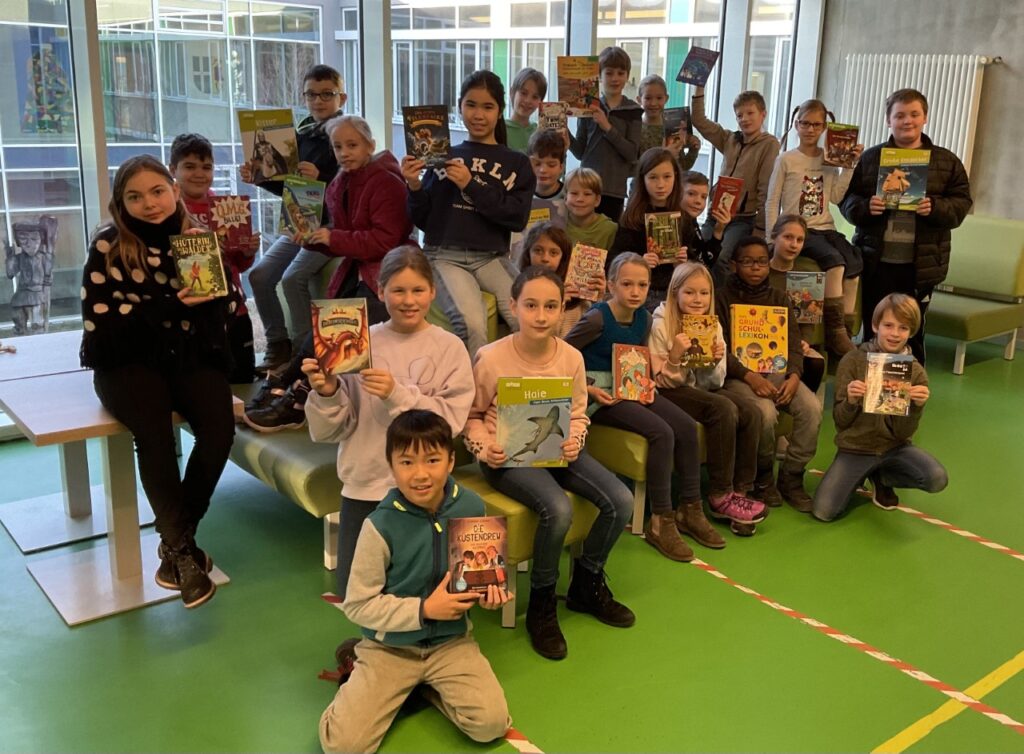Damit freuten sich kurz vor Weihnachten 72 regionale Kinderkrippen, Kindergärten und Grundschulen gemeinsam mit ihren Kindern über eine ganz besondere Weihnachtsüberraschung: Eine neue Bücherbox. Auch die Joß- Fritz- Grundschule durfte sich über eine der Bücherboxen freuen. Hierfür hatte sich die Klasse 4a Gedanken gemacht, warum Bücher für Grundschulkinder besonders wichtig sind…