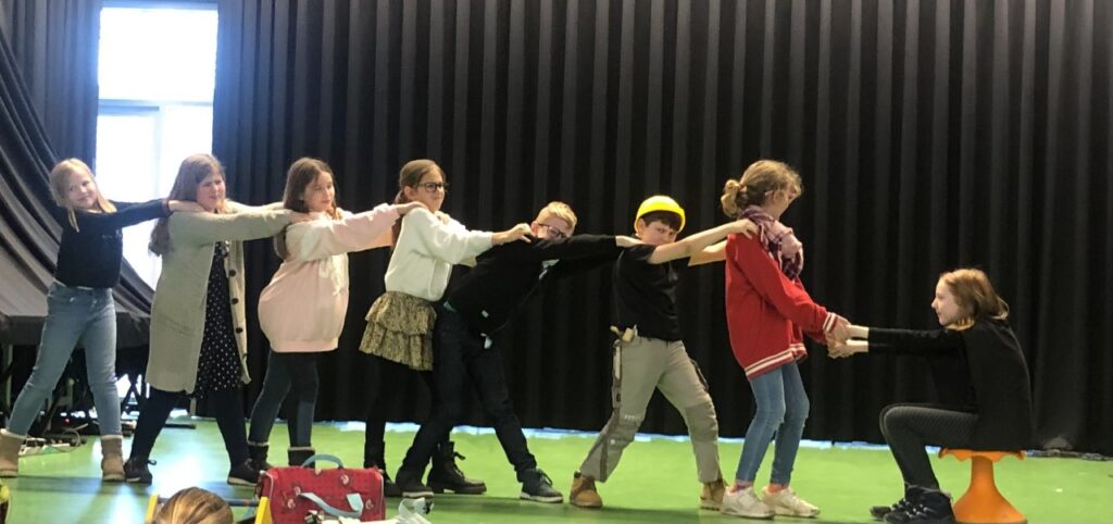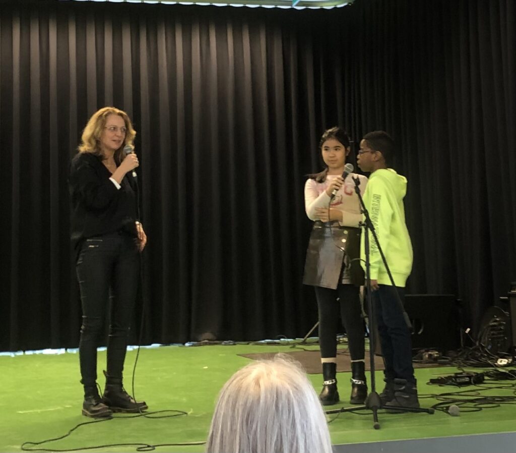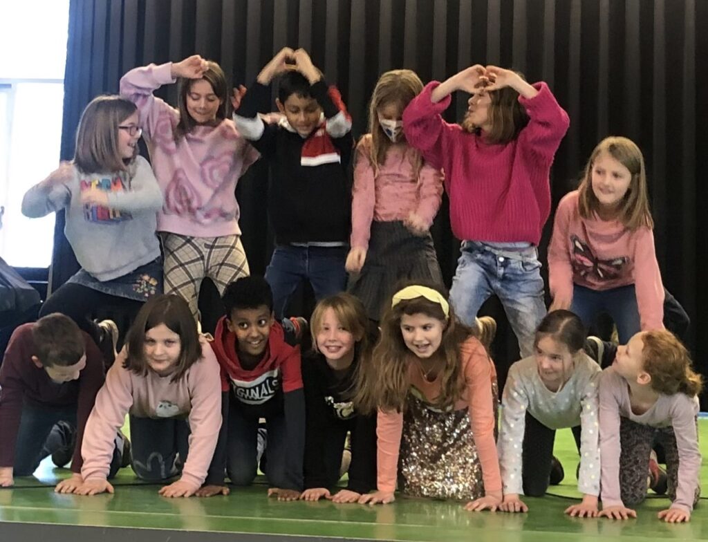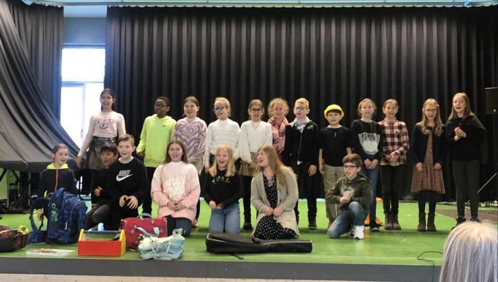 Die Kinder der Klassen drei und vier unterhielten mit humorvollen englischen Theaterstücken bestens das Publikum und zogen dabei auch „Miss Manz“ mit ein, die in einem sportlichen Interview Rede und Antwort stehen durfte. Außerdem schaffte es das TEAM der Schule auf der Bühne schließlich gemeinsam, ihre „enorm, große und schwere Tasche“ zu heben. Sichtlich gerührt war Claudia Manz auch von einem selbstgedichteten Lied und einer herzigen Menschen- Pyramide.  Einig waren sich alle Kinder: „Frau Manz, sie sind toll!“