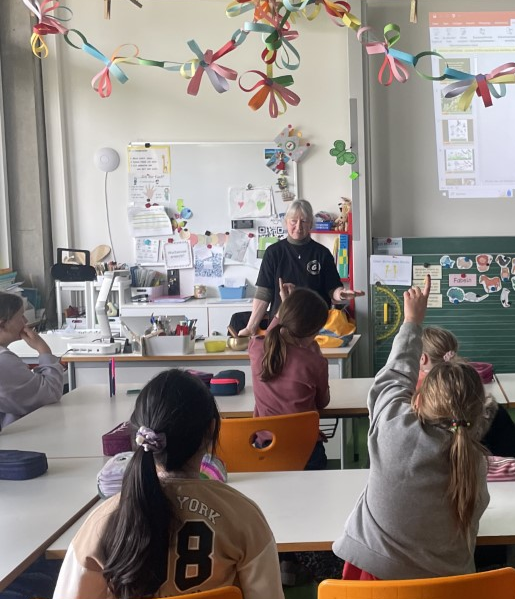 Auch außerschulische Experten besuchten die Klassen. So waren beispielsweise die Klassenstufen eins und zwei auf der Wiese am Baggersee unterwegs und untersuchten mit Frau Dickgießer- Weiß mit Becherlupen die Vielfalt der Insektenwelt. Trotz Regenwetter und kühlen Temperaturen entdeckten die Kinder verschiedene Insekten und Spinnentiere und konnten sie durch Vergrößerungsgläser genauer betrachten. Alle Kinder erhielten im Anschluss Blumensamen, die einen kleinen Beitrag zu einer bienenfreundlicheren Umwelt leisten können. Die Drittklässler werden demnächst Bienenstöcke im Bruchsaler Schloss besuchen und von Herrn Rausch Interessantes über den kleinen pelzigen Nützling erfahren. Die vierten Klassen schließlich bekamen Besuch von Frau Carl vom Umwelt- und Naturschutzverein, die sehr anschaulich über den Zusammenhang von Nahrungsketten und Amphibienschutz erzählte. Wie wichtig der Erhalt einer intakten Insektenwelt für den Bestand unserer Umwelt ist, haben die Kinder in diesem Vortrag eindrucksvoll erfahren.