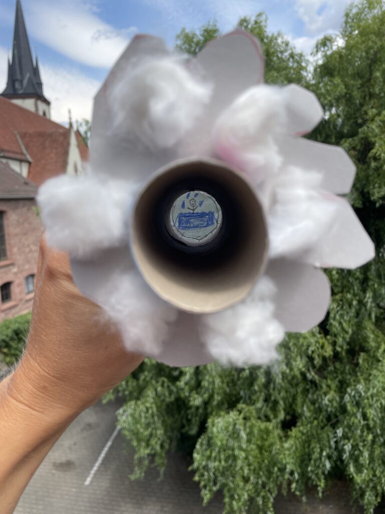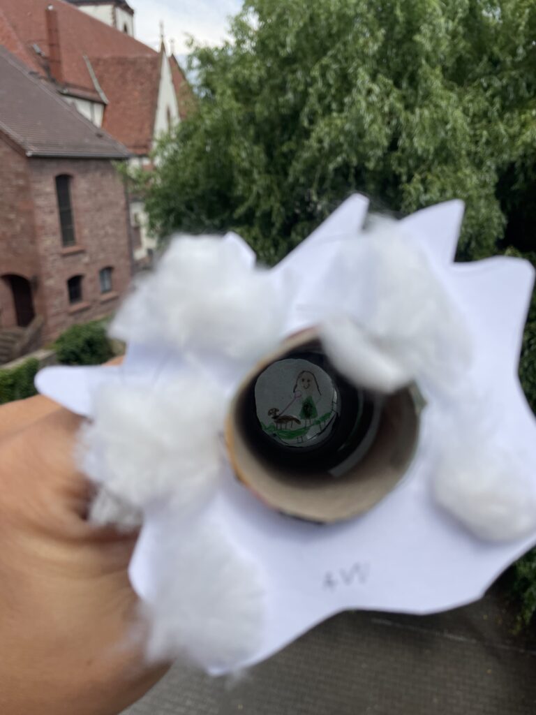 Das Thema des Wettbewerbs lautete: „Du bist ein Gott, der mich sieht!“ Inspiriert von dieser tiefgründigen Botschaft, begannen die Schülerinnen und Schüler der Giraffenklasse, ihre Gedanken kreativ umzusetzen. Sie stellten sich vor, wie Gott mit einem ausziehbaren Fernrohr durch die Wolken blickt und die Kinder der Giraffenklasse in verschiedenen Momenten ihres Lebens beobachtet.