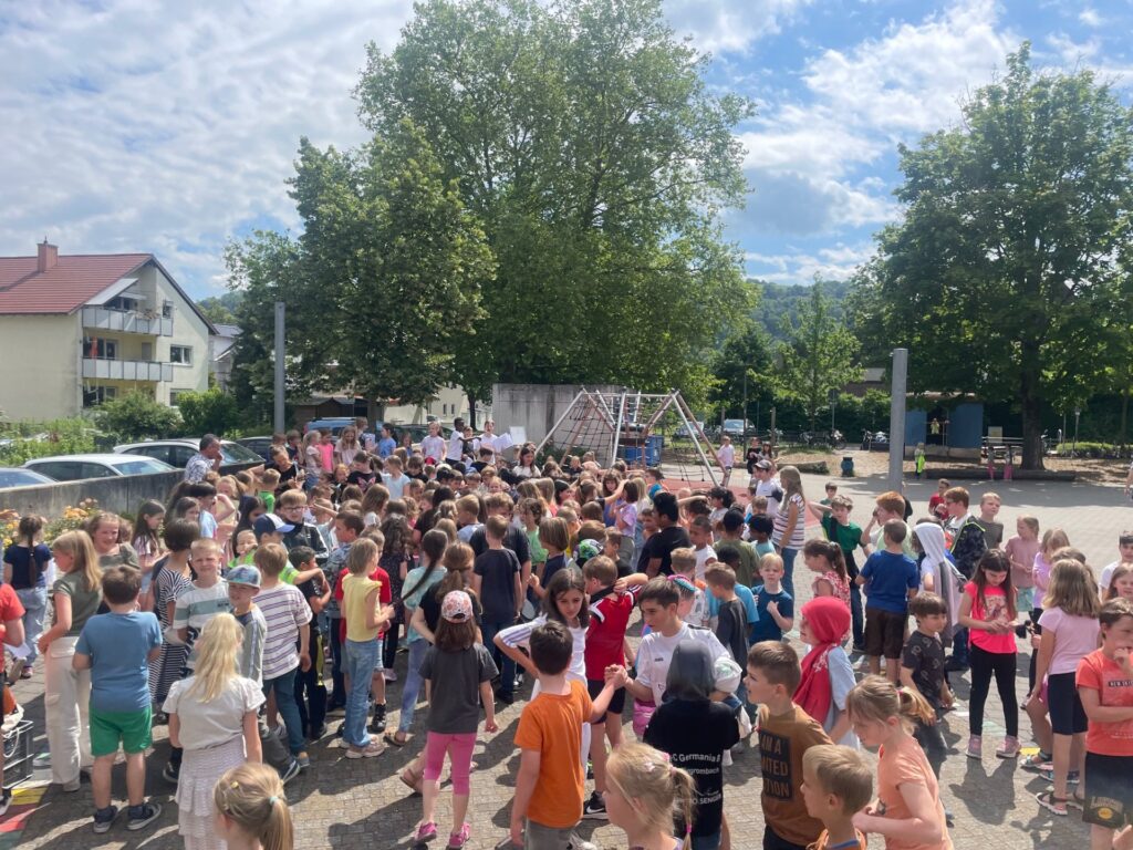 Mit dem gemeinsamen Singen der Europa- Lieder auf dem Schulhof ging die Woche schließlich zu Ende.