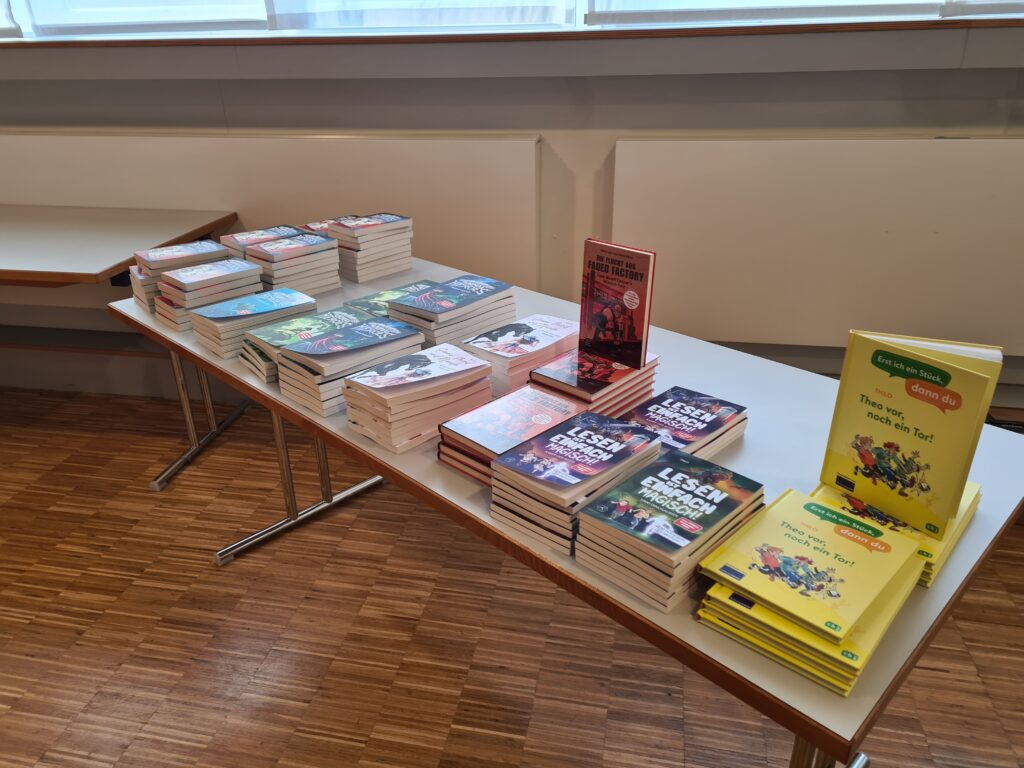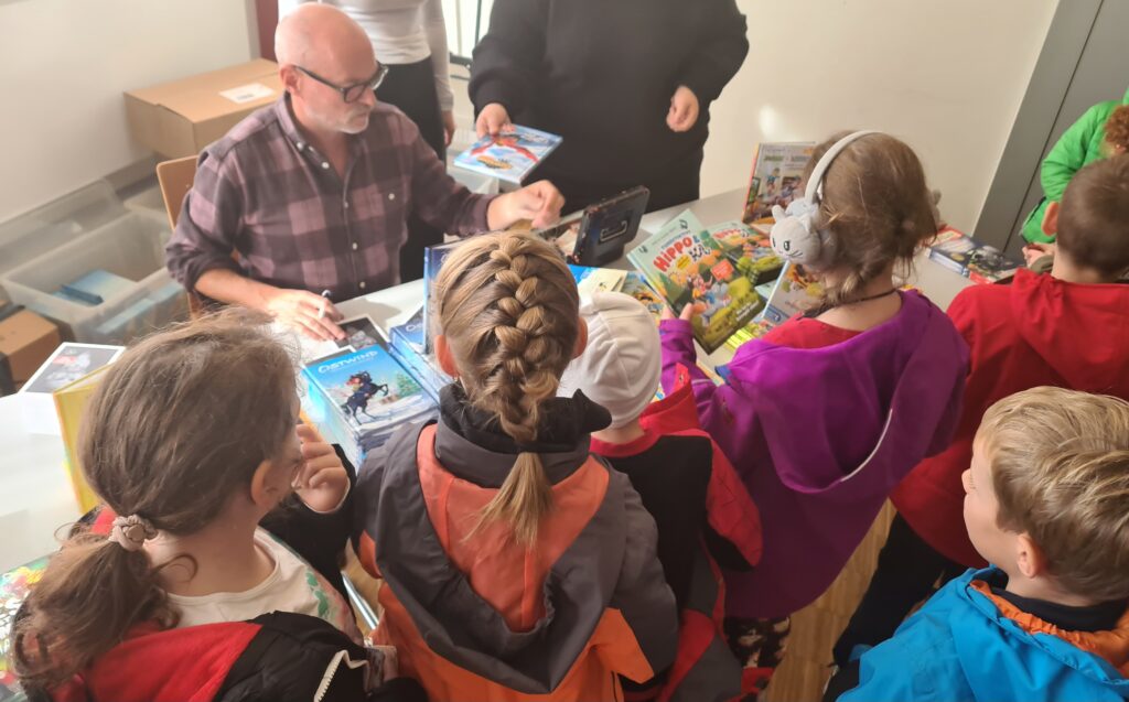 Die Dritt- und Viertklässler kamen anschließend in den Genuss einer Lesung aus der actionreichen Reihe „Animal Heroes“. Auch hier verstand es THiLO, die Kinder mitzureißen und ihnen einen aufregenden Einblick in die Welt tierischer Superhelden zu geben. Zum Abschluss jeder Lesung gab es die Möglichkeit, Bücher direkt am Büchertisch zu erwerben – ein Angebot, das viele Kinder begeistert annahmen. Als besondere Erinnerung erhielten alle Schülerinnen und Schüler zudem eine persönlich signierte Autogrammkarte von THiLO.