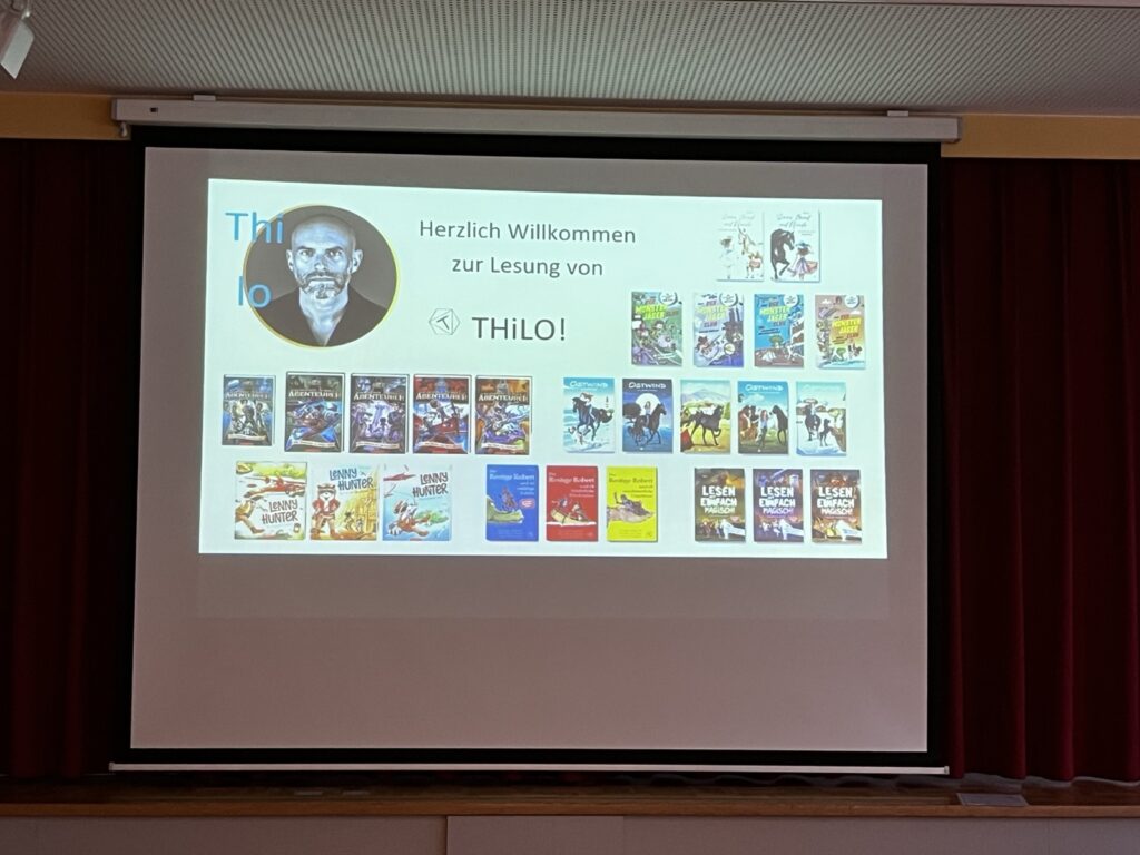 Ein echtes Highlight war der Besuch des bekannten Kinderbuchautors THiLO, der mit viel Witz und Begeisterung aus seinen Büchern vorlas. Für die Klassen 1 und 2 stand der „Monsterjäger-Club“ auf dem Programm. Die Kinder durften nicht nur einer spannenden Geschichte lauschen, sondern sich auch aktiv an einer interaktiven Monsterjagd beteiligen – begleitet von farbenfrohen Illustrationen aus dem Buch. Die jungen Zuhörer waren mit Feuereifer dabei und zeigten großen Spaß an der Präsentation.