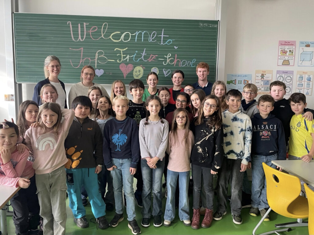 Am Dienstag, den 16. Dezember 2025, kamen fünf Studierende von der Queen´s University in Belfast, Nordirland, zu uns in die 4b. Zur Begrüßung setzten wir uns in einen Kreis und stellten uns vor. Da unsere Gäste kein Deutsch können, sprachen wir natürlich auf Englisch mit ihnen. Als alle ausführlich über sich erzählt hatten, boten wir den Studierenden an, ihnen die Schule zu zeigen. Das interessierte sie sehr. Während der Führung durfen alle Kinder aus unserer Klasse etwas zeigen und erklären. Die englischen Sätze dafür hatten wir vorher gut geübt. Nach der Führung erzählten uns die Studierenden, wie man in Nordirland Weihnachten feiert. Sie brachten uns auch bei, wie man Jingle Bells auf Irisch singt. Außerdem zeigten sie uns Bilder von den Schuluniformen, die Kinder in Nordirland tragen müssen. Am Ende schenkten sie allen Kindern aus unserer Klasse noch ein Christmas-Heftchen und einen Stift mit der Aufschrift: Queen´s University Belfast. Es war ein sehr spannender Vormittag für uns und wir hatten viel Spaß. (Hanna Ch. 4b)